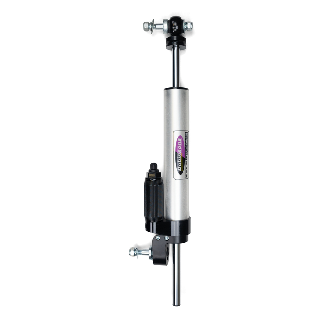Dobinson's Adjustable Monotube Steering Damper offers increased steering control and reduces unwanted steering forces in both directions normally found in conventional steering dampers.
